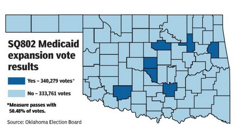 For example, in 2020 State Question 802 was an initiative that added an article to the Oklahoma Constitution. This was heavily lobbied by groups from outside Oklahoma and would reportedly bring needed help to rural hospitals. However, rural counties voted it down. Only heavily populated counties voted in support of this measure. It passed by 50.49% clearing the simple majority needed to change our Constitution.